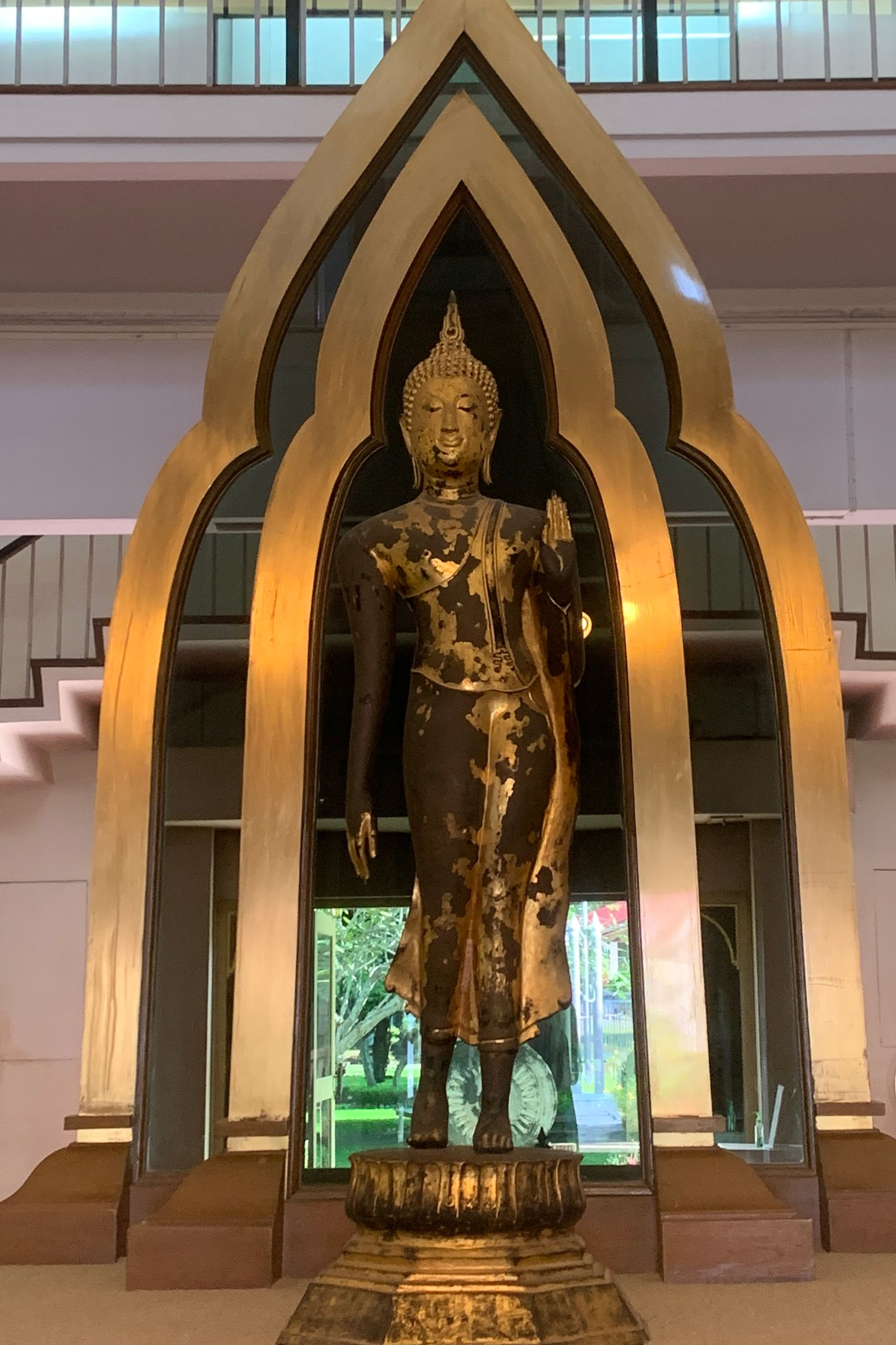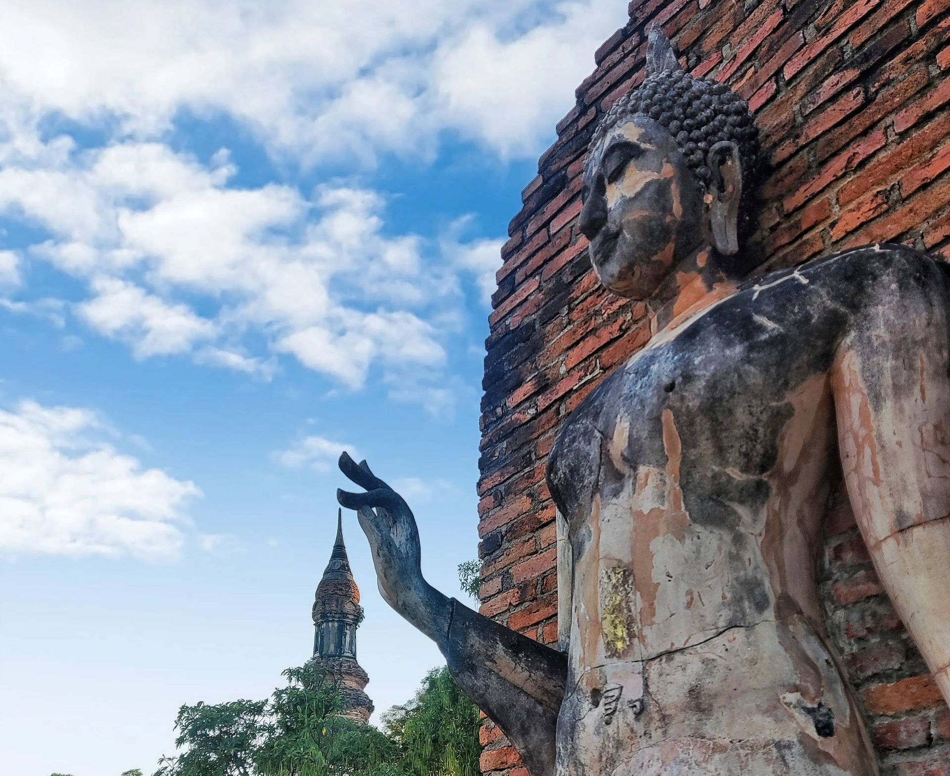 - The Dynamic Movement (The Walking Buddha): Sukhothai inventors created the Leela or "Walking Buddha." Unlike the rigid, standing statues of previous eras, this Buddha is captured in a moment of fluid motion—a heel raised, a hand gesturing, and robes flowing like water. It represents the Buddha descending from Tavatimsa Heaven, showcasing a divine grace that focuses on inner peace rather than physical strength.