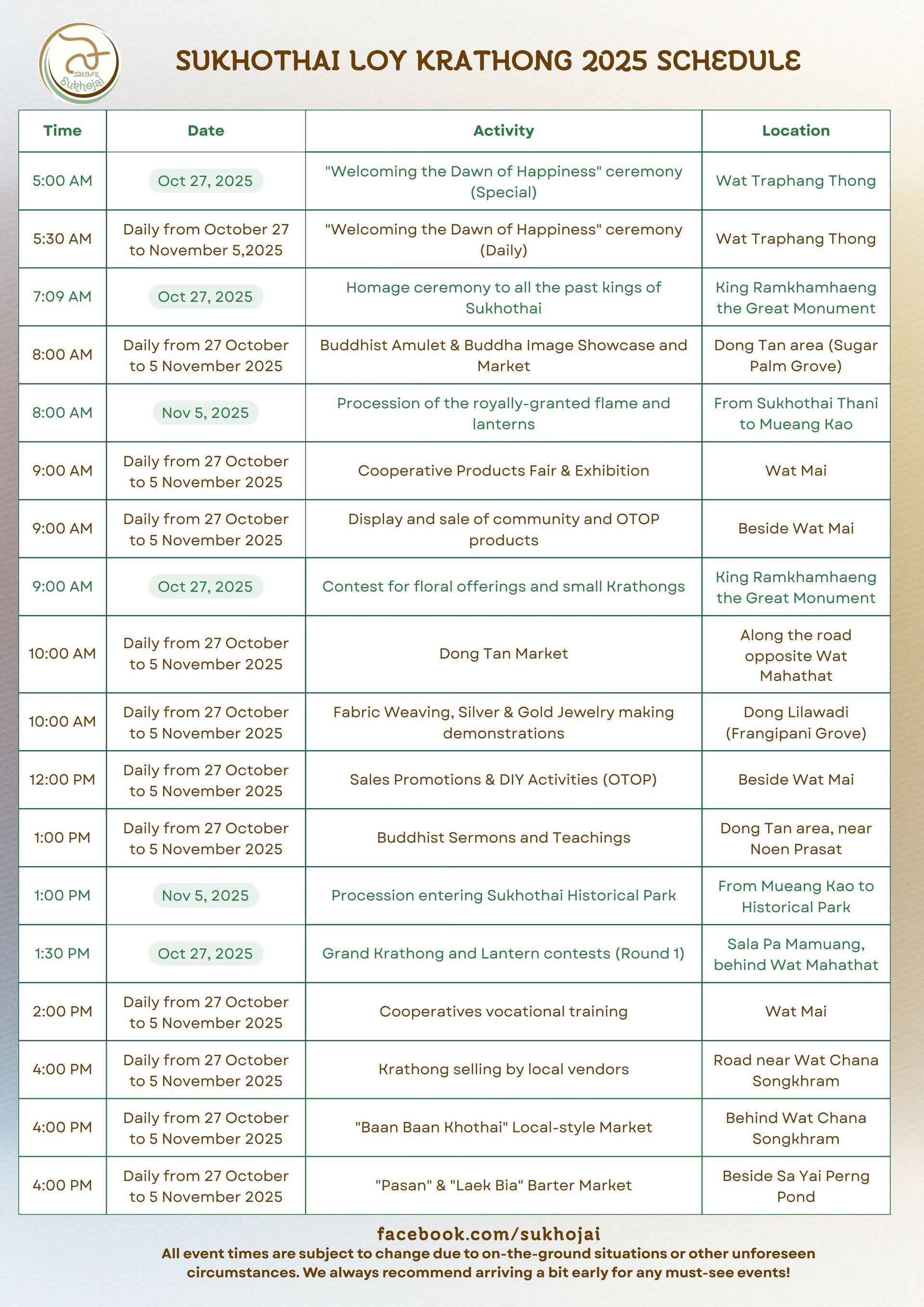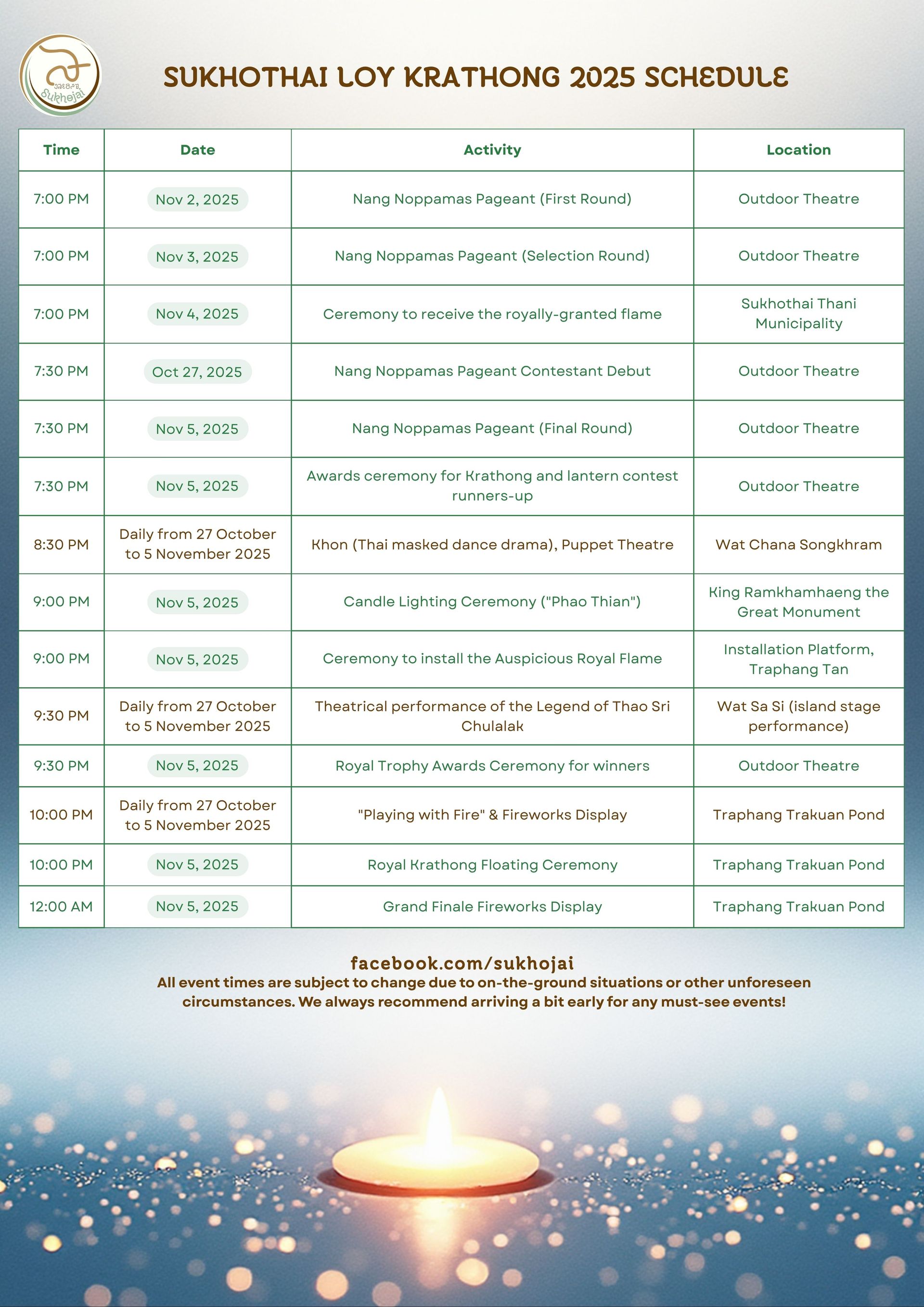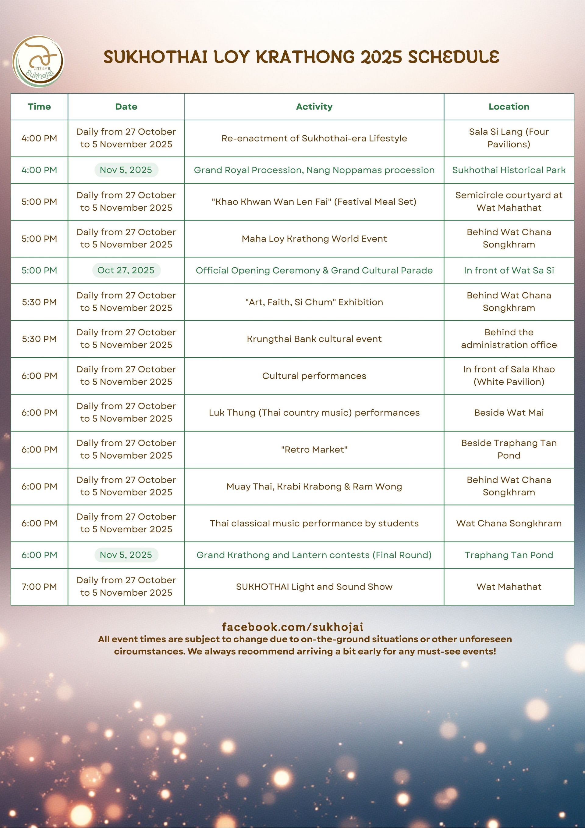 Our complete 2025 Sukhothai Loi Krathong timeline is here! 📜✨