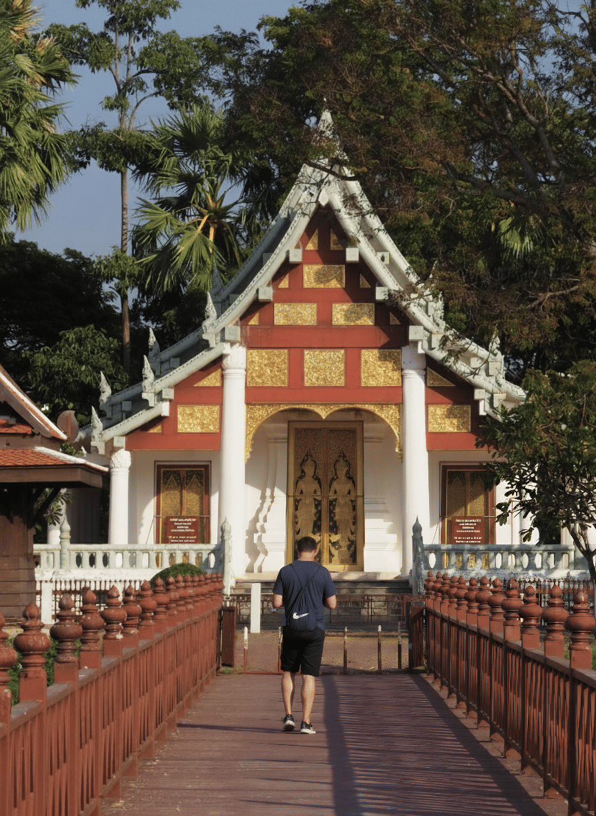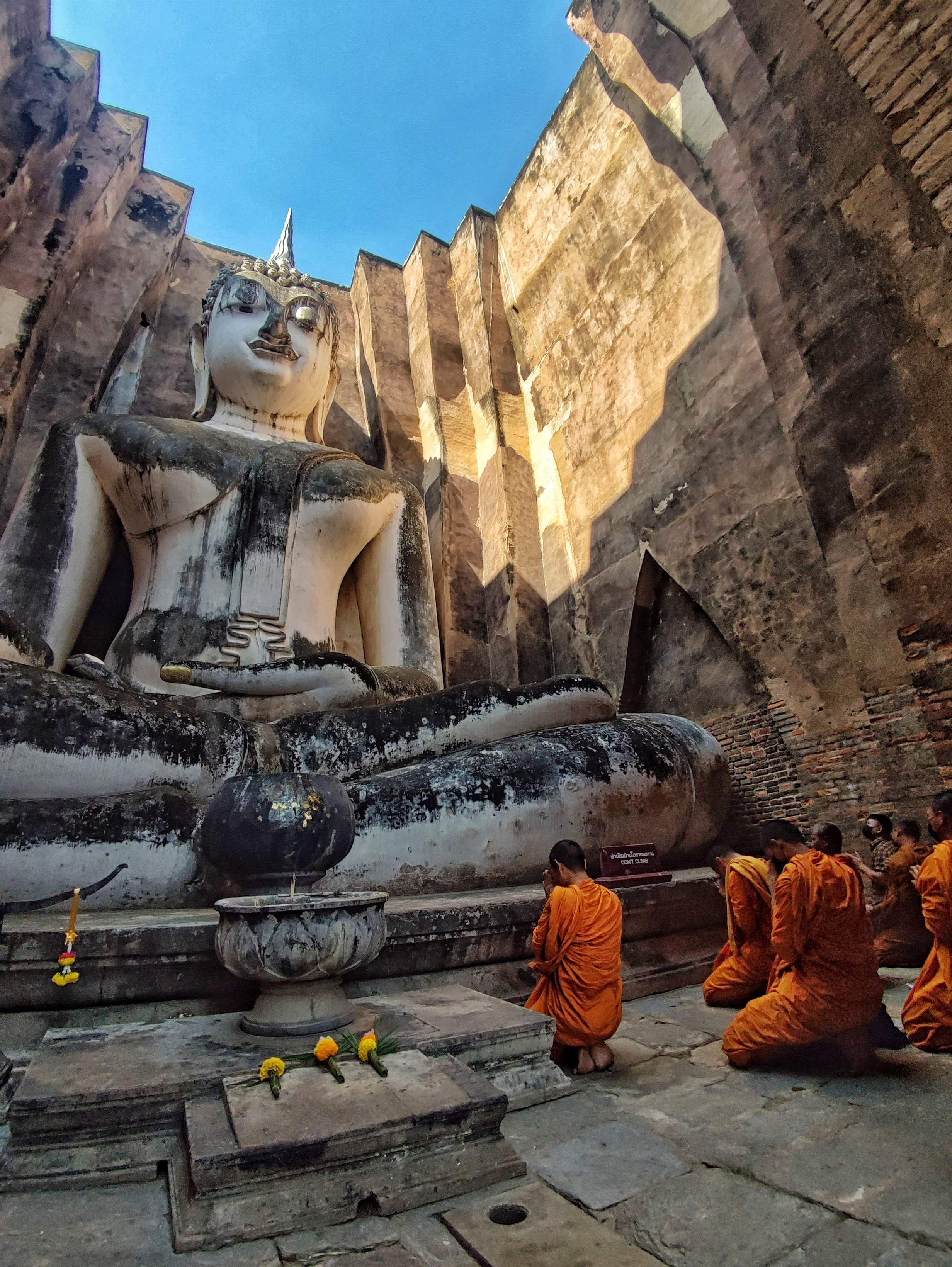 Upon reaching the Historical Park, we will leave the car behind to explore the majestic, car-free Central Zone, effortless journey in a private electric golf cart. As we explore iconic sites like Wat Mahathat and Wat Sa Si in the soft morning light, you will discover the profound history, art, and Buddhist philosophy. Finally, we will return to our A/C vehicle for a short drive to the Northern Zone to stand before the colossal, awe-inspiring Phra Achana Buddha of Wat Si Chum.