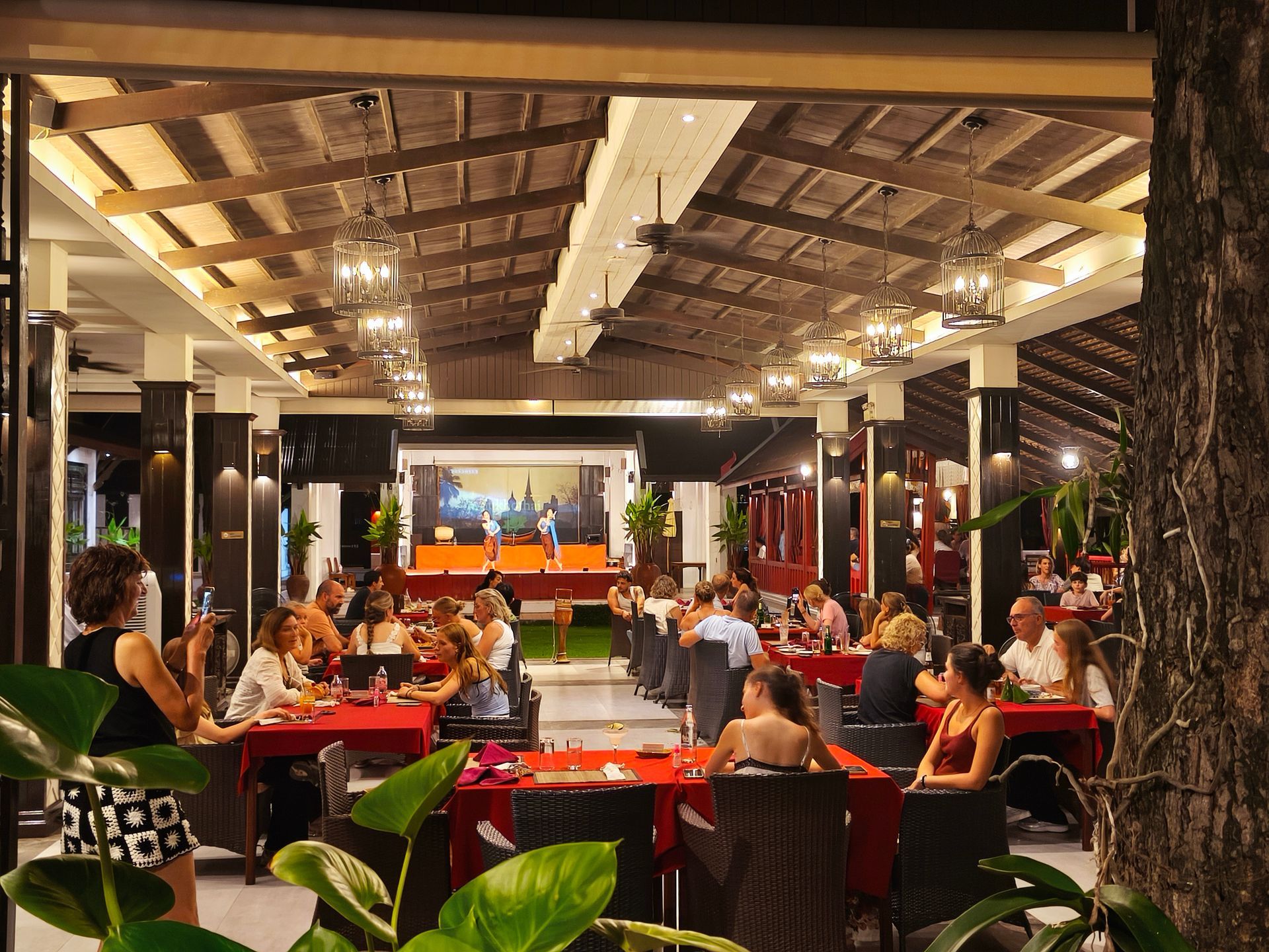 - Vibe: Relaxed, traditional, and incredibly welcoming. Set in a semi-outdoor pavilion surrounded by tropical plants.